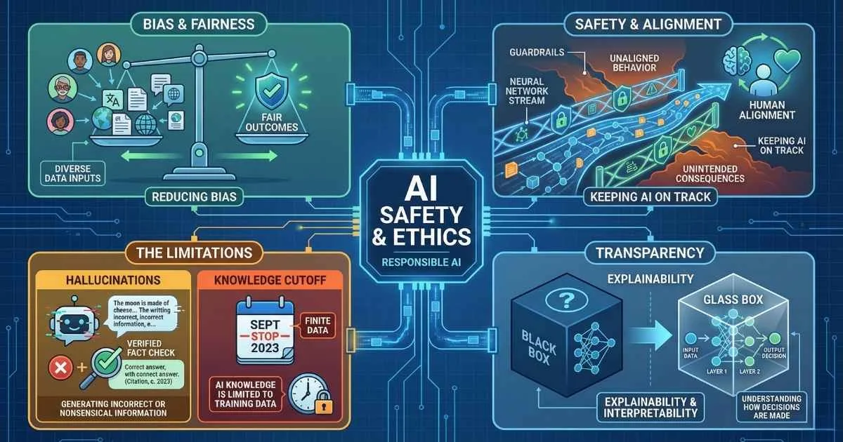Beyond accuracy, organizations must navigate complex challenges regarding data privacy, algorithmic bias, and security vulnerabilities like prompt injection. Deploying AI responsible requires a robust understanding of its failure modes and the implementation of strict guardrails.